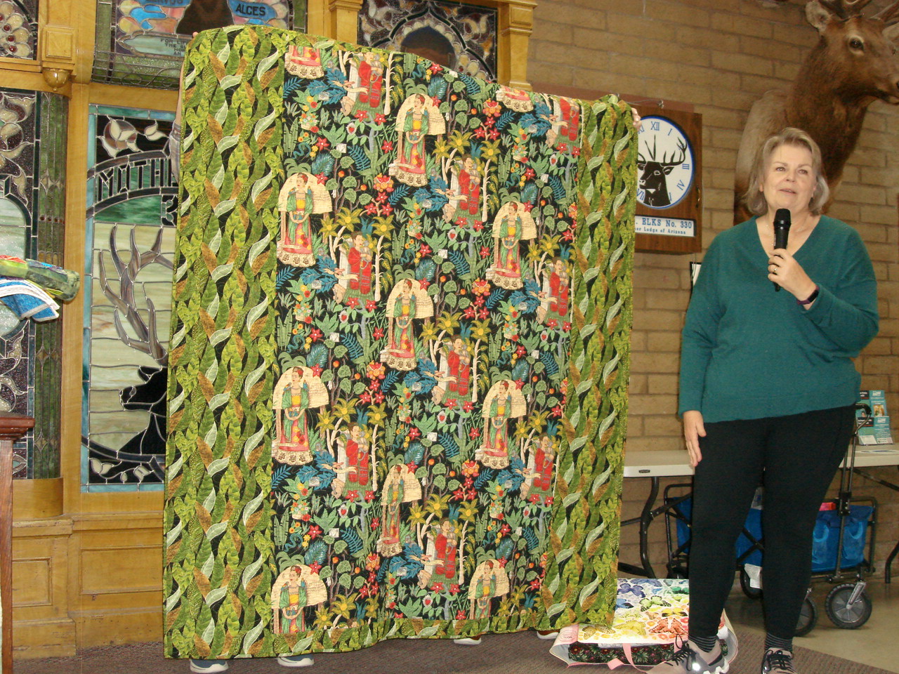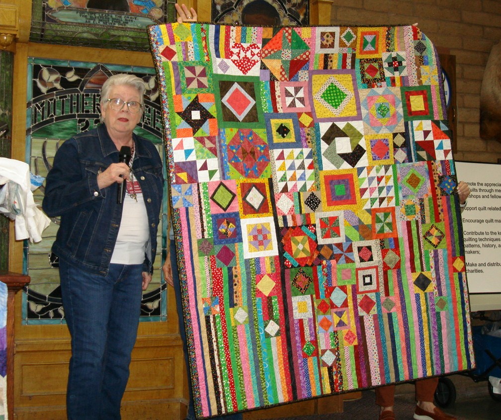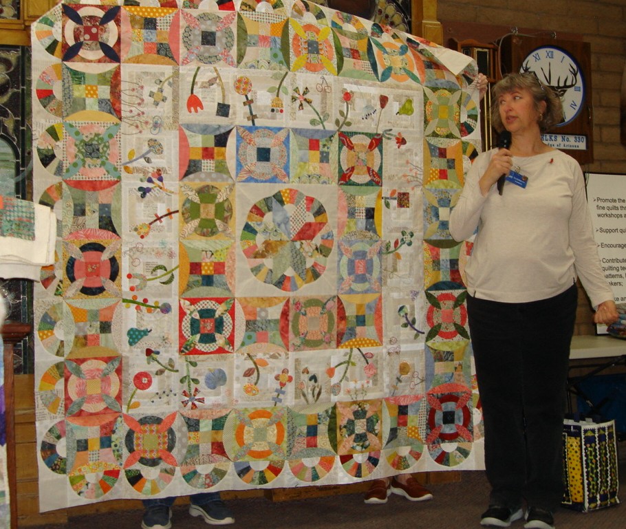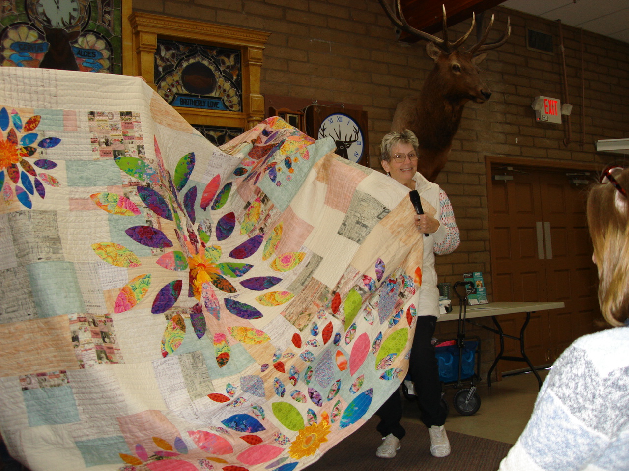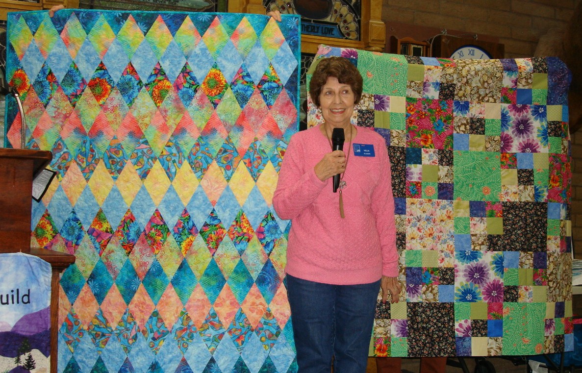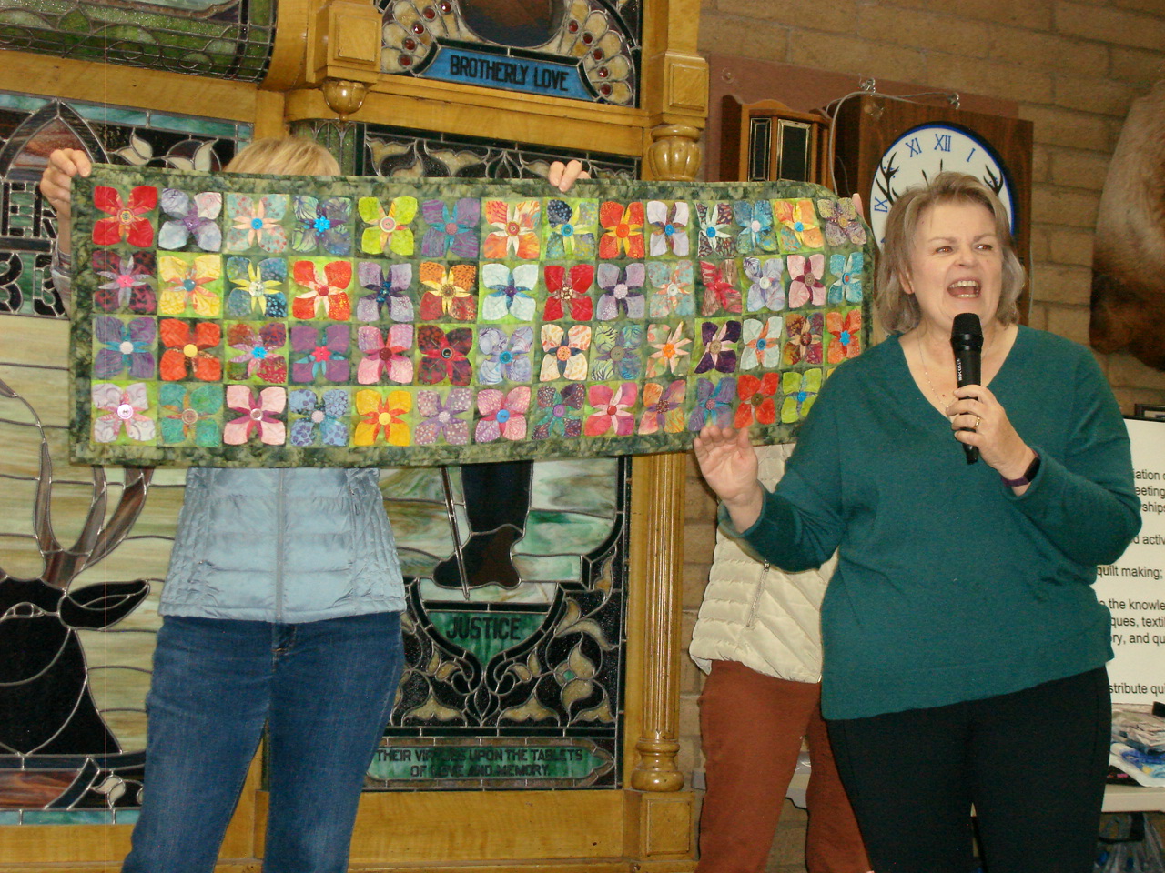 These quilts and their stories may inspire the rest of us to make a similar project. Often, we merely enjoy looking at others’ work with awe. In either case, show and tell is one of the most popular portions of guild meetings. Each month, all of the quilts shown will be featured here for you to enjoy as well. To see a slide show click on one of the pictures and use the arrows to slide