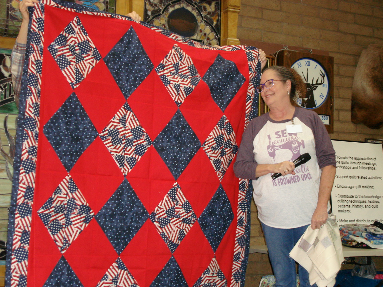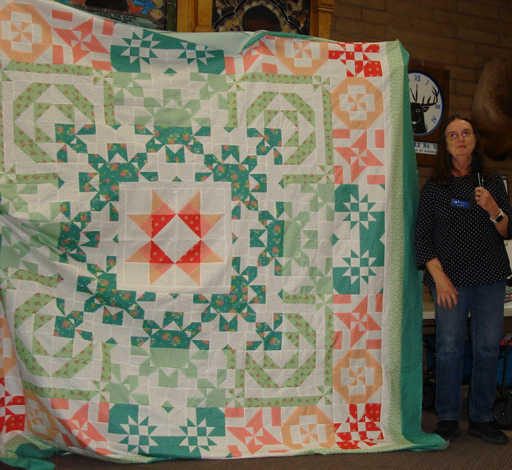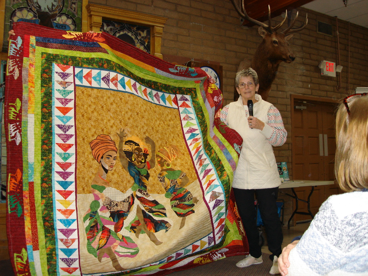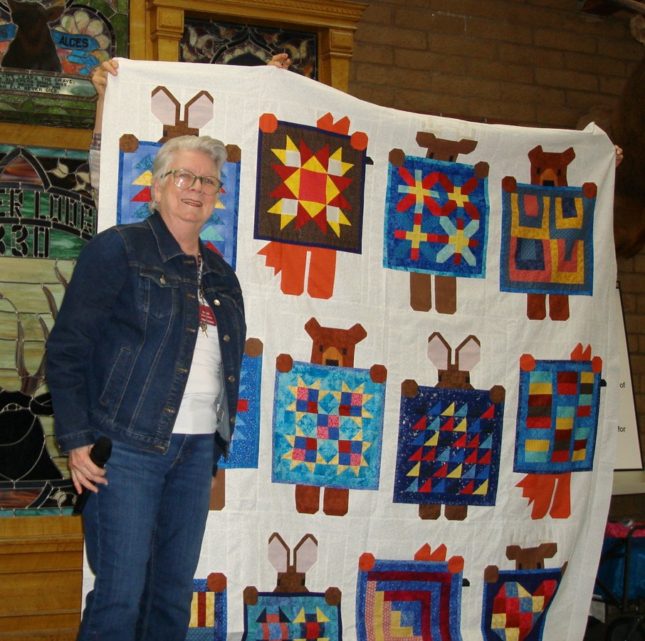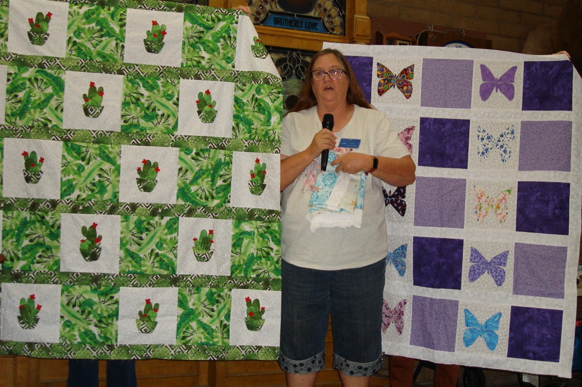 These quilts and their stories may inspire the rest of us to make a similar project. Often, we merely enjoy looking at others’ work with awe. In either case, show and tell is one of the most popular portions of guild meetings. Each month, all of the quilts shown will be featured here for you to enjoy as well. To see a slide show click on one of the pictures and use the arrows to slide