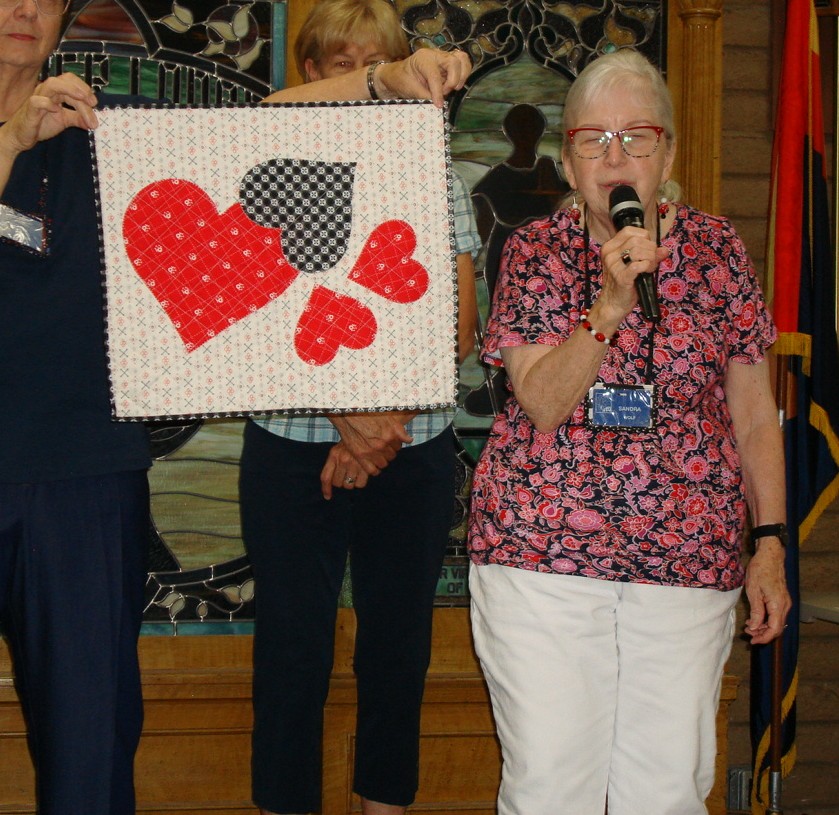 These quilts and their stories may inspire the rest of us to make a similar project. Often, we merely enjoy looking at others’ work with awe. In either case, show and tell is one of the most popular portions of guild meetings. Each month, all of the quilts shown will be featured here for you to enjoy as well. To see a slide show click on one of the pictures and use the arrows to slide