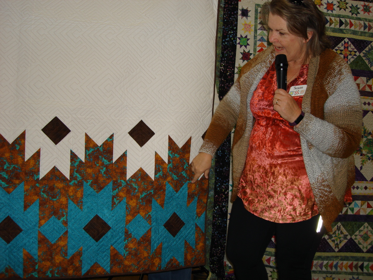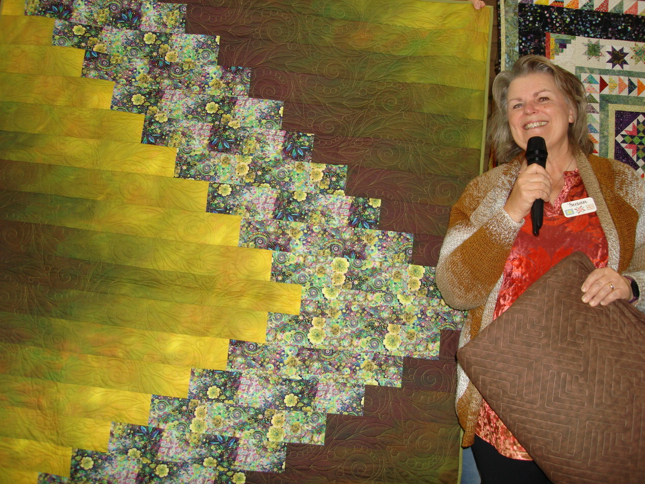 These quilts and their stories may inspire the rest of us to make a similar project. Often, we merely enjoy looking at others’ work with awe. In either case, show and tell is one of the most popular portions of guild meetings. Each month, all of the quilts shown will be featured here for you to enjoy as well. To see a slide show click on one of the pictures and use the arrows to slide