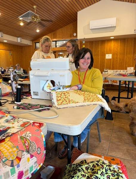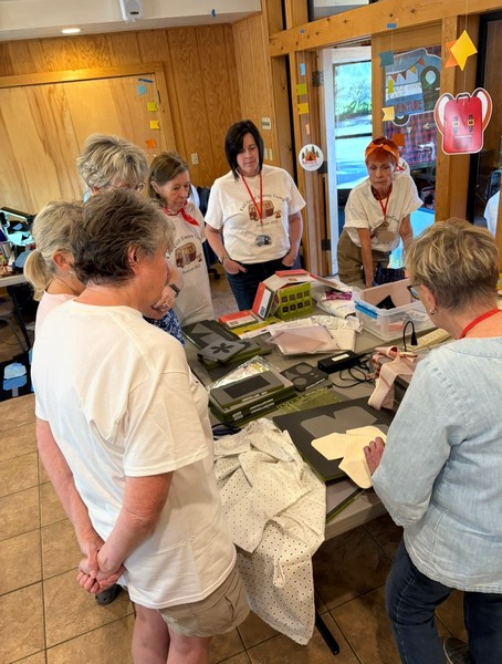 Diana Ramsey & Kathy Hofmeister This month we completed 60 “possessions bags” to be used by the CASA for Kids Foundation to give to kids who are in transition and need something to carry their clothes, toys, etc. On Monday, September 23rd , 2024 over a dozen Elks and MTQG members helped cut and sew the lined, soft flannel bags. All the bags have been distributed by the Foundation and they will notify us when the supply gets low and we can hold another sewing session. Let Diana know if you have flannel to donate for future production. We use 1 yard increments so no small pieces, please.